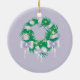Chèvre d'Angora - Ornements de chèvre de vacances avec un flair tropical. Arrière - plan de lavande avec forfaits cadeaux pastel et des branches de vacances avec un joli ornement lavande. Chaque conception comporte une race de chèvres et sur le dos une couronne tropicale de vacances.