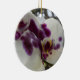 Une orchidée blanche et pourpre avec le treillage à l'arrière-plan.