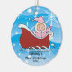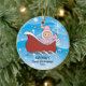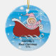 Le premier ornement de Noël du bébé comporte le bébé blond le plus mignon dans un ensemble rouge de traîneau sur un arrière - plan rempli par neige. Personnalisez avec votre information de bébé et date et vous sont tous placent pour aller ! Cadeau daté merveilleux de souvenir pour ęr Noël de votre bébé.