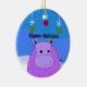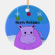 Un design mignon pour le collectionneur d'hippopotames. Un arrière - plan bleu aux ornements rouges et verts. Un grand hippo violet souriant accentue cet ornement.
