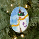 Un ornement de Noël ovale avec un bonhomme de neige et un brasier perché sur son casquette, attiré par les baies sèches. La même image est à l'arrière de l'ornement et ce design est également disponible en tant que Carte de Noël.