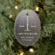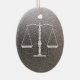 Ornement personalizable élégant avec des "échelles de justice" sur l'arrière - plan bleu de toile.