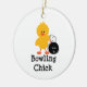 Un poussin jaune mignon à côté d'une paire de goupilles et une boule de bowling sur les T-shirts de poussin de bowling, le tee - shirt, les autocollants, les tasses et plus de marchandises et d'habillement de nouveauté qui font un cadeau mignon pour votre bowling team et amis. Cliquez sur dessus le lien suivant pour voir tout notre Chrissy mignon H.
