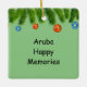 Décorez vos vacances avec un ornement de vacances Aruba. Les ornements de Noël aident à garder l'esprit de fête en vie! Le texte est personnalisable. Dimensions : 2,75 po x 2,75 po; Poids : 0,96 oz. Fait de porcelaine blanche Impression pleine couleur et fond noir sur blanc Impression sur les deux côtés