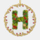 ornement décoré d'un monogramme initial de Noël de H - entourez cette décoration exquise d'arbre de Noël de la lettre H donnera à votre Noël un contact traditionnel avec une sensation personnalisée moderne. A conçu pour ressembler à un arbre de sapin couvert de présents et des cadeaux cette lettre a sur un ornement circulaire est entourés par un cadre d'or avec les baies rouges. Le haut de gamme et tendent dessus ceci est un luxe abordable pour vous les besoins de décor de vacances. Le double a dégrossi pour l'impact supplémentaire ce vert et l'image rouge sur un arrière - plan de blanc neigeux est un favori avec des entreprises également. Alphabet en entier disponible.