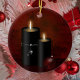 Illustration de Noël gothique avec bougies noires avec décoration crâne argent et bauble rouge de Noël avec crânes noirs sur un arrière - plan rouge-noir grunge avec flocons de neige.