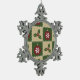 Quatre carrés en vert et bronzages sont ornés avec les ornements rouges décorés des flocons de neige blancs et du houx vert avec les baies rouges. Piquer blanc ajoute un contact décoratif, donnant au motif de répétition l'aspect d'un édredon, créant un sentiment parfaitement confortable pour les vacances de Noël. Cet ornement est également disponible dans un style de boule.