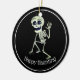 Cet ornement en porcelaine céramique est présenté en forme ronde avec un squelette d'Halloween imprimé. Customisez cet objet ou achetez tel quel.
