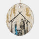 Scène de la Nativité avec mon art original représentant avec la naissance de Jésus-Christ sur un ornement en cercles céramiques.
