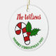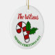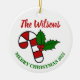 Cet ornement de Noël envoie un message à votre famille et vos amis. Customisez-le avec votre nom de famille et votre message personnel. L'ornement est imprimé à l'avant et à l'arrière.