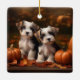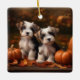 Ornement En Céramique Biewer Terrier Chiot Automne Citrouille délice