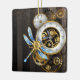 Cadran d'antiquités avec or et lances en laiton, décoré de libellules mécaniques sur arrière - plan brun rayé. Steampunk.