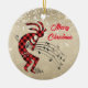 Personnalisez cet ornement de Noël "One of a Kind" au sud-ouest de Kokopelli! Il présente une Silhouette Kokopelli Sud-Ouest Jouant la Flûte avec des notes de musique...sur un Arrière - plan de Noël Gold et White ! Design D'Art Original Par L'Artiste Kerry Miller.