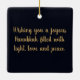 Ornement en céramique Hanoukka avec une citation sur le dos du festival juif, qui a duré huit jours à partir du 25ème jour de Kislev (en décembre) et commémorant le réengagement du Temple en 165 avant JC par les Maccabées après sa profanation par les Syriens. Il est marqué par l'allumage successif de huit lumières.