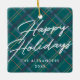 Décorez votre sapin de Noël avec cet ornement en céramique simple mais festif. En plus de l'arrière-photo personnalisée, le décor comporte également une écriture manuscrite "Joyeux Vacances" superposée, avec un arrière - plan chaud et rustique plaid.