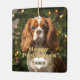 Ornement personnalisé pour animaux de compagnie pour ceux qui adorent les chiens (ou les chats). Il présente une photo de votre compagnon de fourrure bien-aimée des deux côtés, Enfermé dans un cadre circulaire contemporain de charme orné de mousseux dorés et de flocons de neige. Téléchargez simplement votre photo préférée pour animaux de compagnie pour personnaliser cette conservation!