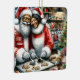 Sucré vintage M. et Mme Santa Claus (afro-américaine) cuire des biscuits dans la cuisine. Un art mignon qui vous donne cette ambiance nostalgique de Noël. Placez un message personnalisé à l'arrière.