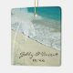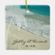 Créez un cadeau de gardien pour la mariée et le marié nouvellement marié lorsque vous personnalisez le joli Tropical Beach Wedding Ornament. Ce décor de mariage sur la plage est orné d'une photo naturelle pittoresque d'un océan turquoise ou bleu aqua sur le littoral de sable blanc avec un palmier et un design tourbillon au coin. Parfait pour commémorer une destination insulaire décontractée mais classe ou le thème mariage tropique.