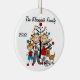 Assez autour de l'ornement en céramique de vacances de Noël de souvenir comporte un chiffre de bâton papa, maman, garçon dans la casquette de baseball, un chat, et le chien de famille devant l'arbre et les régions de Noël décorés où vous pouvez ajouter le texte comprenant l'année en cours et le nom de famille. C'est un cadeau adorable pour que n'importe quelle famille commémore l'année !