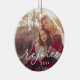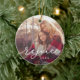 Simple et élégant ornement de vacances présente une photo de chaque côté avec "réjouissance" recouvert de lettres blanches. Personnalisé avec l'année en dessous.
