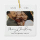 Cette photo script moderne Joyeux ornement de Noël comprend deux de vos photos préférées (à l'avant et à l'arrière) de votre nouveau bébé, de votre famille, ou de votre nouvelle maison ainsi que votre nom de famille et votre date.