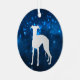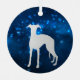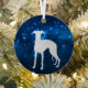 Ce joli ornement de vacances présente une silhouette argentée Whippet Dog image entourée d'une étoile bleue ciel clair. L'arrière de l'ornement a le même arrière - plan bleu, et deux champs de texte à customiser. Élégant !