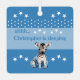 Ornement métallique recto verso. Une idée cadeau pour un nouveau bébé, avec un joli zèbre, des étoiles et des pois. Personnalisez avec un nom / shhh 'nom de bébé' est en train de dormir. L'expression "Sweet Dreams" est à l'arrière. Bleu et blanc.