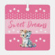 Ornement métallique recto verso. Une idée cadeau pour un nouveau bébé, avec un léopard mignon, des étoiles et des pois. Personnalisez avec un nom / shhh 'nom de bébé' est en train de dormir. L'expression "Sweet Dreams" est à l'arrière. Rose et blanc.