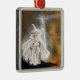 Magicien blanc puissant prêt pour la bataille au-dessus du gisement de lave avec son personnel magique.