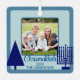 Créez votre propre joli ornement Chrismukkah en bleu marine et bleu clair et avec votre photo, avant et arrière, pour un souvenir de famille. Du simple sapin de Noël bleu marine au menorah Hanoukka bleu marine assorti, ce ornement en métal carré bleu foncé et bleu pastel commémorera vos vacances interreligieuses mixtes. Le modèle photo facile à utiliser vous permet d'ajouter votre photo où elle est encadrée par une bordure bleu moyen qui se répète autour des bords de l'ornement de vacances. Ajoutez votre nom et l'année à l'avant en bleu foncé où ils sont flanqués de part et d'autre par le sapin de Noël bleu marine moderne à gauche et la Menorah bleu marine à droite. Le design est répété à l'envers de ces ornements métalliques qui crée un charmant Chrismukkah keepsaké - personnalisez un nouveau avec une photo mise à jour chaque année ou personnalisez un ensemble pour toute la famille. Ces vêtements de vacances personnalisés Chrismukkah en bleu foncé et bleu clair sont un cadeau amusant pour vous-même ou comme un des cadeaux personnalisés pour les amis interconfessionnels et la famille.
