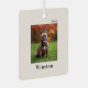 Modern Ivory Custom Name Photo metal ornament with your pet’s name in a gray, bold serif font. Your pet's photo is framed with a thin white line on an elegant ivory background.