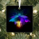 Vieux, luciole mécanique avec ampoule et ailes fines brille orange, violet, turquoise sur arrière - plan noir. Style Steampunk.