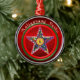 Montrez votre amour pour la culture philippine et vos souvenirs de Noël philippin. Accrocher cette Parole sur votre sapin de Noël signifiera beaucoup à Lola, Lolo, Nanay, Tatay, Kuya, Ate, Bunso, et Kapitbahay. Un motif du tapis philippin "bang" les rayons du soleil du drapeau philippin, et la naissance de Jésus.