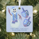 Ces adorables ornements Hanoukka à double face sont un régal pour vous-même ou comme des gardiens réfléchis pour vos amis et votre famille lors de l'échange de cadeaux. Doté d'un joyeux bonhomme de neige juif sur le devant et de deux dreidels assortis sur un arrière - plan bleu pastel pâle, le simple texte bleu foncé en bas est facile à personnaliser. En train de lire NOTRE PREMIÈRE HANOUKKA avec un nom et une année, ce libellé peut être modifié à ce que vous voulez. L'arrière de ces ornements Festival of Lights a sept petits dreidels dansant autour d'une zone de modèle texte où vous pouvez ajouter un message plus long personnalisé. Créez vos propres ornements Hanoukka personnalisés à garder et à offrir pendant vos célébrations.