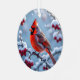 Un joli cardinal perché sur une branche enneigée illustration sur le devant d'un ornement de Noël et sur le dos vous pouvez ajouter votre propre message de vacances personnalisé.