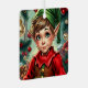 A sweet Christmas ornament that you can add your own holiday message to, with a cute elf cartoon and a festive background.