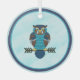 Un chouette brun et bleu, fait dans le style d'art populaire nordique, superposé sur une image arrière - plan enneigée. Vous pouvez supprimer la bordure extérieure. Dans la mythologie normande/viking hiboux symbolisait la sagesse et l'illumination. Les Scandinaves modernes associent les chouettes à la prospérité, à la fortune et à l'intelligence.