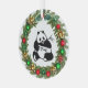 A Christmas wreath with a giant panda in the center decorates this adorable glass ornament