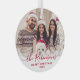 Ornement En Verre Élégant Rouge Script Famille Photo Joyeux Noël