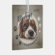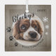 Nom du chien rustique de Noël du premier chiot et ornement en verre photo. L'arrière - plan est gris rustique avec des flocons blancs et des empreintes de pattes noirs. Personnalisez l'ornement avec la photo, le nom et l'année de naissance de votre chien - insérez votre photo de chiot préférée. Vous pouvez utiliser cet ornement personnalisé pour n'importe quel animal de compagnie. Une belle tenue de vacances pour un propriétaire de chien.