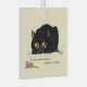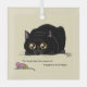 Chat noir sur le point de rebondir et de faire le "cul de chatte se balançant". Souris de jouet près du chat noir.