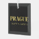 Glam Christmas ornament caractéristiques Prague, République tchèque latitude et longitude coordonnées carte, montré verticalement en polices or sur l'arrière - plan noir.