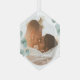 Créez votre propre garde mariage avec cet élégant ornement de verdure Joyeux et Marié Photo Verre de Vacances. Ce design moderne et chic présente des illustrations d'aquarelle aux branches d'eucalyptus. Ajoutez deux photos personnalisées à l'avant et à l'arrière, des noms nouvellement mariés et un texte personnalisé. Montrez tout votre amour avec celui-ci ok un bon ornement céramique personnalisée. parfait aussi comme cadeau anniversaire et fiançailles. Votre petite amie va l'adorer ! Pas de commande minimum.