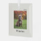 Modern Ivory Custom Name Photo glass ornament with your pet’s name in a gray, bold serif font. Your pet's photo is framed with a thin white line on an elegant ivory background.