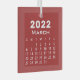 Moderne Simple Rouge Mars 2022 Calendrier mois Ornement en verre