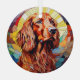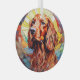 Voici un joli ornement en verre sur le thème du vitrail, avec un beau chien rouge de Setter irlandais. Le chien est dressé contre un arrière - plan en mosaïque multicolore. Les couleurs sont le bleu, l'or, le rouge marron, la crème et plus encore. Cela fait un bon pochette ou une décoration pour la maison qui aime un Setter irlandais.