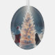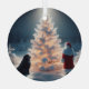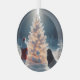 A l'extérieur, Père Noël et son Newfie, admirant l'arbre à feuillage persistant couvert de neige sous une pleine lune.