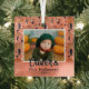 Première Halloween Orange Champignons Automne Photo Ornament en Verre. Joli motif de champignons orange et noir aux couleurs de l'automne, un nom de bébé personnalisé dans un script tendance. Personnalisez l'ornement avec la photo, le nom et l'année de votre bébé. Une belle tenue de vacances Halloween.