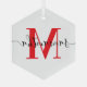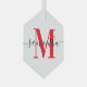 Ajoutez du texte personnalisé pour créer votre propre ornement d'arbre de Noël monogrammé. Ornement hexagone en verre. Le monogramme est une majuscule rouge stylisée. Vous pouvez modifier la couleur de la calligraphie signature avec des queues.