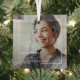Élégant En Mémoire Amoureuse Photo & Citation Verre Mémorial Ornement de Noël. Ce design présente une photographie de votre être cher comme arrière - plan, avec une couverture foncée en bas et une bordure blanche encadrant l'image. Personnalisez simplement avec une photo préférée de votre être aimé, son nom, ses dates et une citation symbolique. Il fait aussi un charmant souvenir pour la famille et les amis à chérir.